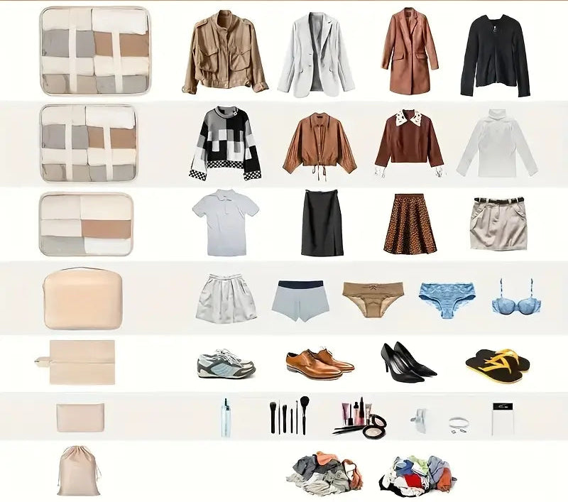 7-Piece Travel Organizer Set – Compact Storage Bags for Clothes, Toiletries & Accessories